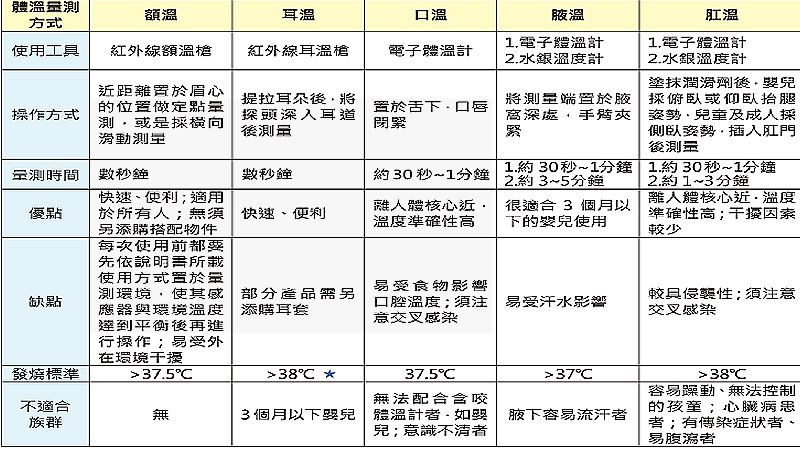 ☑發燒標準:>38℃(惟37.5℃~38℃之間的體溫可能正常也可能是低度發燒,建議於此範圍內應持續追蹤或詢問專業醫事人員)。