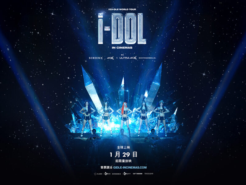 另一矚目焦點《(G)I-DLE WORLD TOUR [iDOL] IN CINEMAS》同步上映,將帶來包括〈Super Lady〉、〈Queencard〉等多首熱門歌曲的精彩演出。購票觀眾可獲得電影主題明信片及隨機照片小卡,其中ScreenX版本更加碼贈送兩張小卡,回饋支持者。