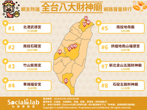 《Social Lab社群實驗室》本次透過《OpView社群口碑資料庫》追蹤近一年「財神廟」話題的網路聲量表現,帶您了解網友熱議的全台八大財神廟。