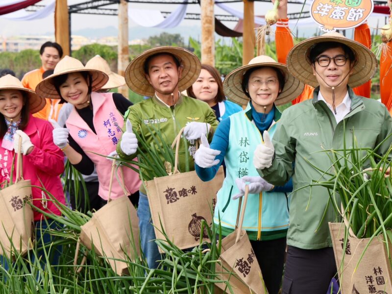 【News586/記者張淑慧報導】高雄市林園區年度盛事「蔥啥咪 林園洋蔥節」盛大登場,今年活動內容豐富,包括農特產品展售市集、雙層巴士導覽、嘟嘟蔥田小火車等特色體驗,並展示洋蔥王競賽的精彩成果。市長陳其邁今(9)日出席開幕式,親自推廣林園洋蔥。他與在地立委、議員一同走入田間,採摘顆顆碩大飽滿的洋蔥,並身穿圍裙親手製作洋蔥魚丸,現捏現煮現品嚐,彈牙新鮮的美味讓他大為讚賞。他也祝福林園洋蔥銷量長紅,農民豐收滿載而歸。