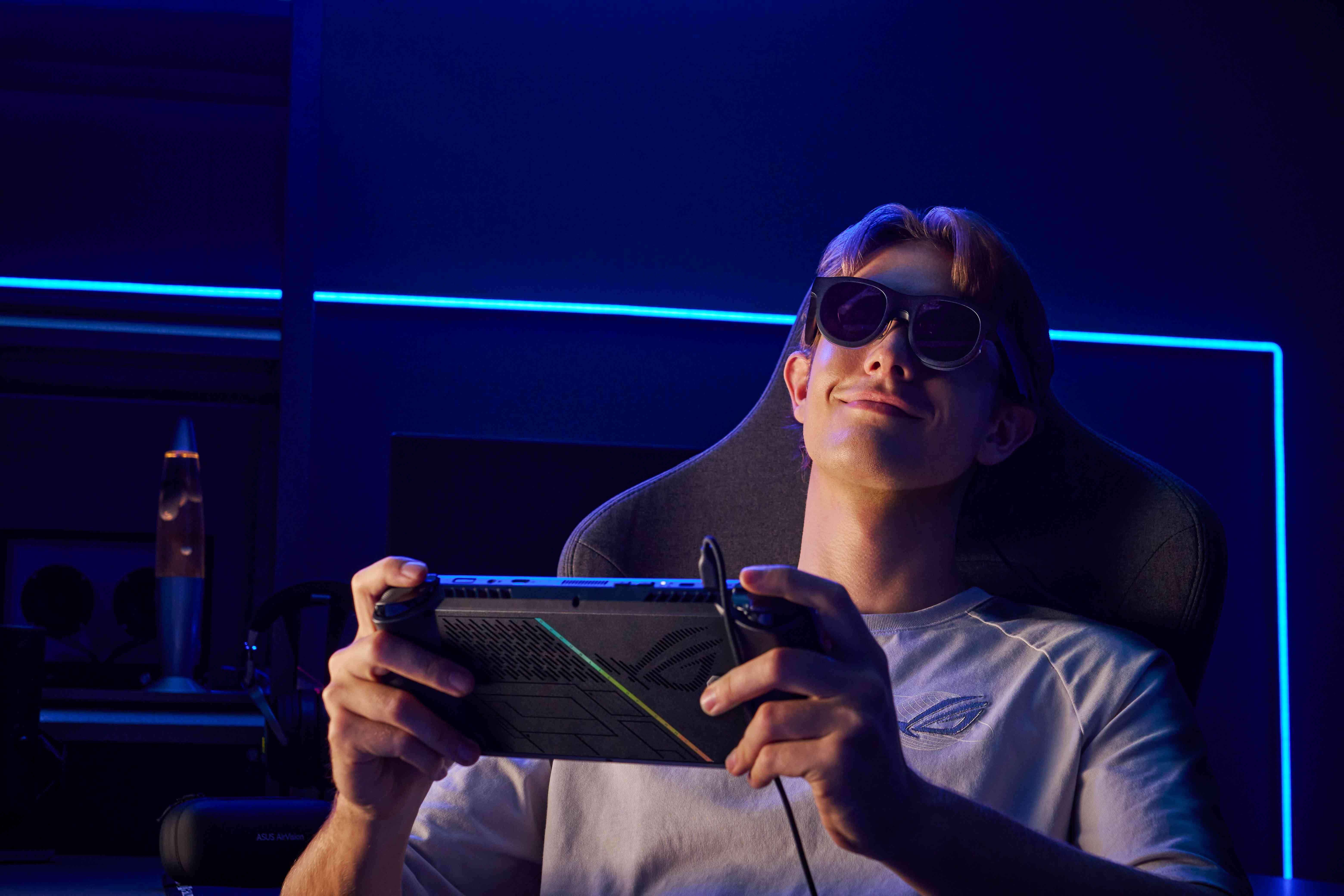 同時,AirVision M1亦可與 ROG Phone電競手機 、ROG Ally掌機無縫整合,提升遊戲畫面品質、反應速度,再加上內建降噪麥克風和揚聲器(如上圖,華碩提供)。