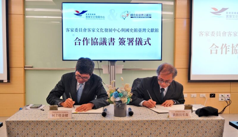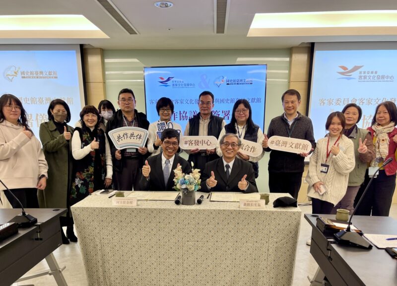 【今傳媒/記者李祖東報導】客家委員會客家文化發展中心為使公私部門資源合力發揮更大功效,近年與日本國立民族學博物館、國立聯合大學、國立臺灣歷史博物館及財團法人北港朝天宮等單位簽署合作協定且獲得豐碩成果。為有更多合作夥伴以提升臺灣文獻史料與客家研究及展示推廣,今(12)日客家委員會客家文化發展中心與國史館臺灣文獻館簽署合作協議書。