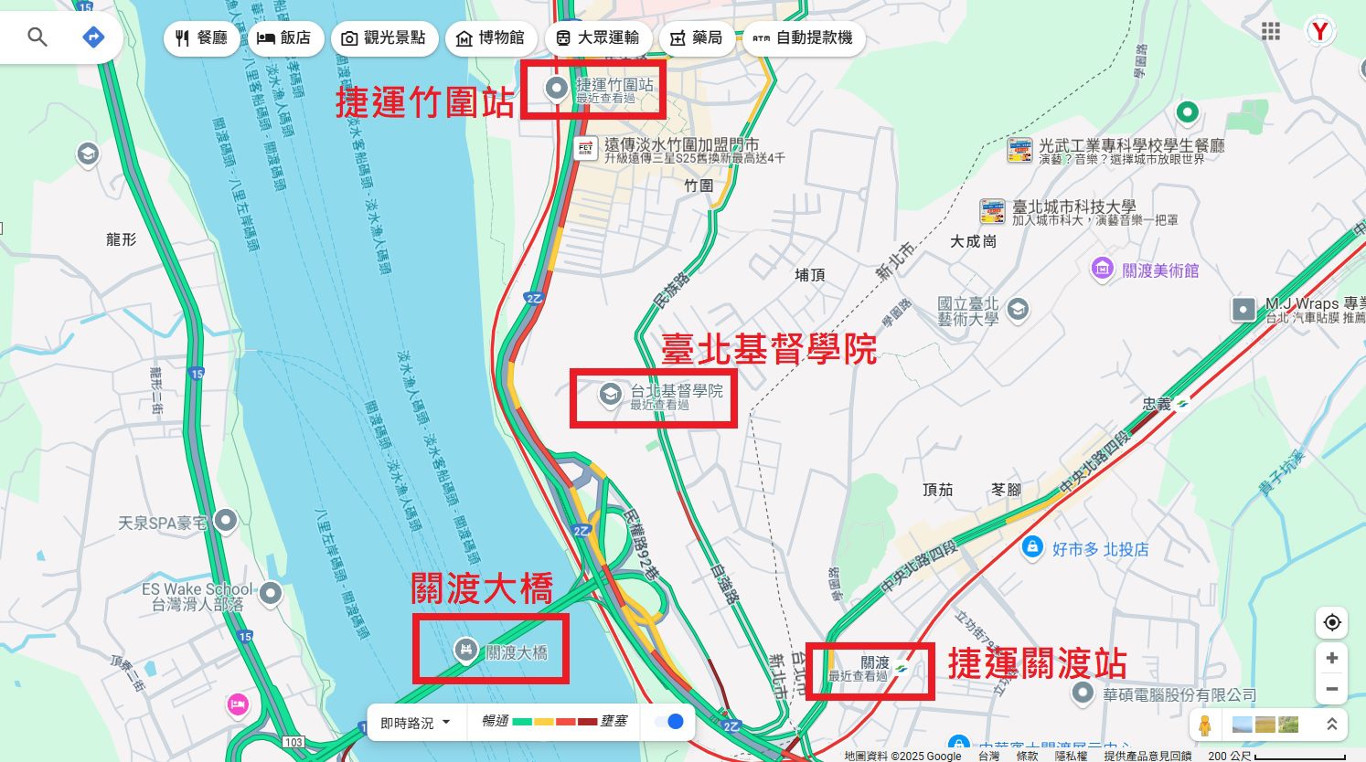 坐淡水線捷運至『竹圍』站下車過天橋沿著民族路步行約15分鐘,