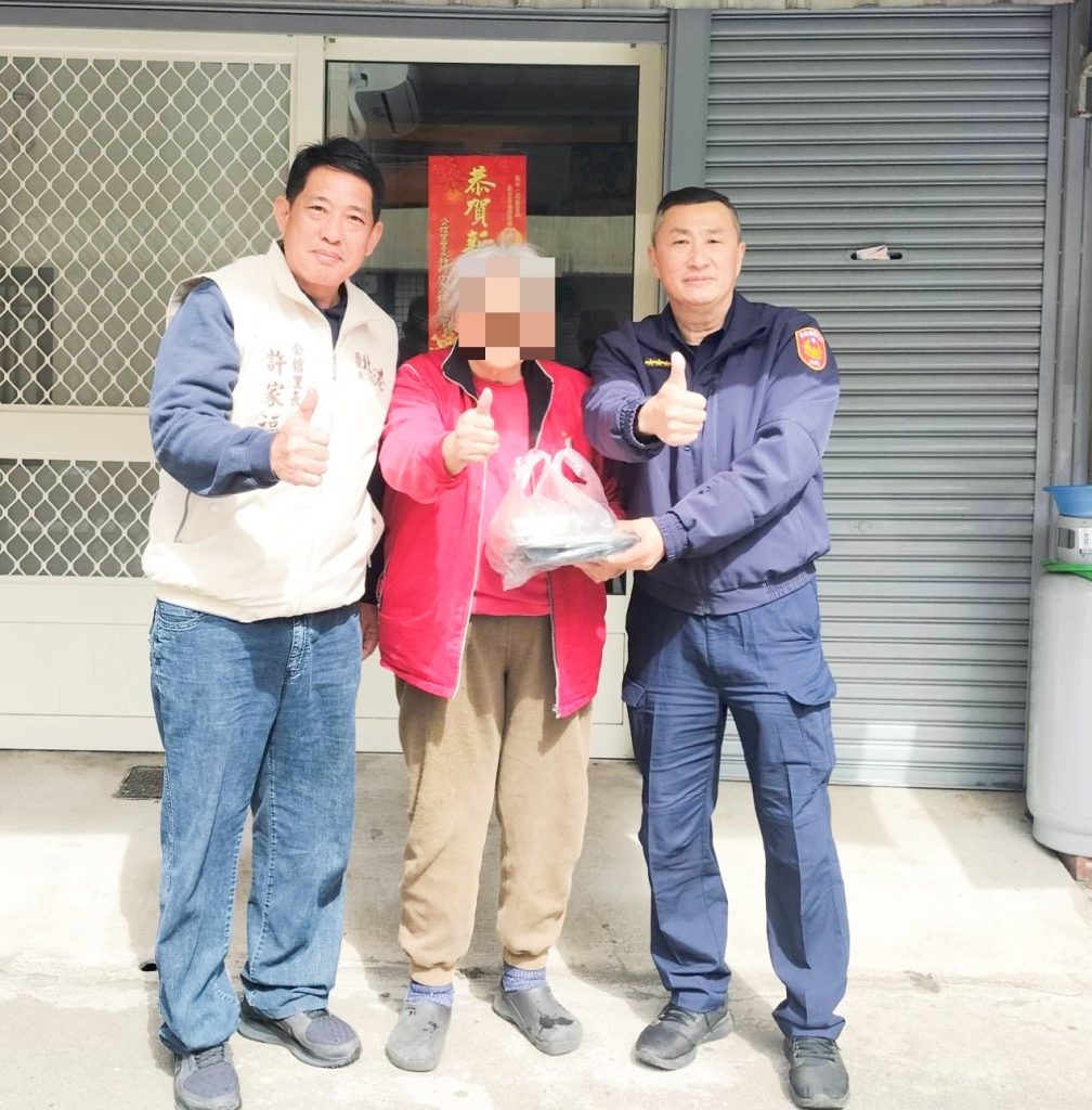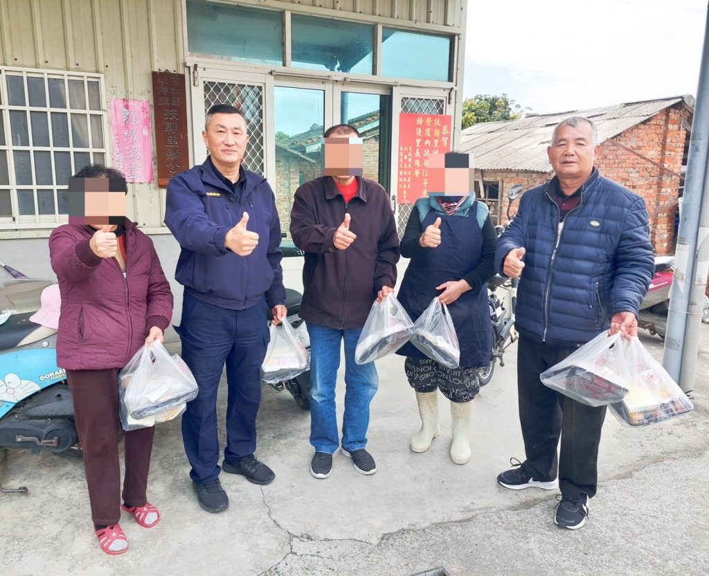 北港派出所副所長黃詩傑指出,這一波寒流來襲,沿海地區氣溫僅10度,嚴重影響長青長者的健康,他與所內員警探視走訪轄內生活亟需社會伸出援手之獨居老人及弱勢家庭,與各村、里長發送民生物資,同時轉達「有需要警察幫忙的地方,可以透過警勤區員警或直接打派出所電話,警方會盡力來協助」。