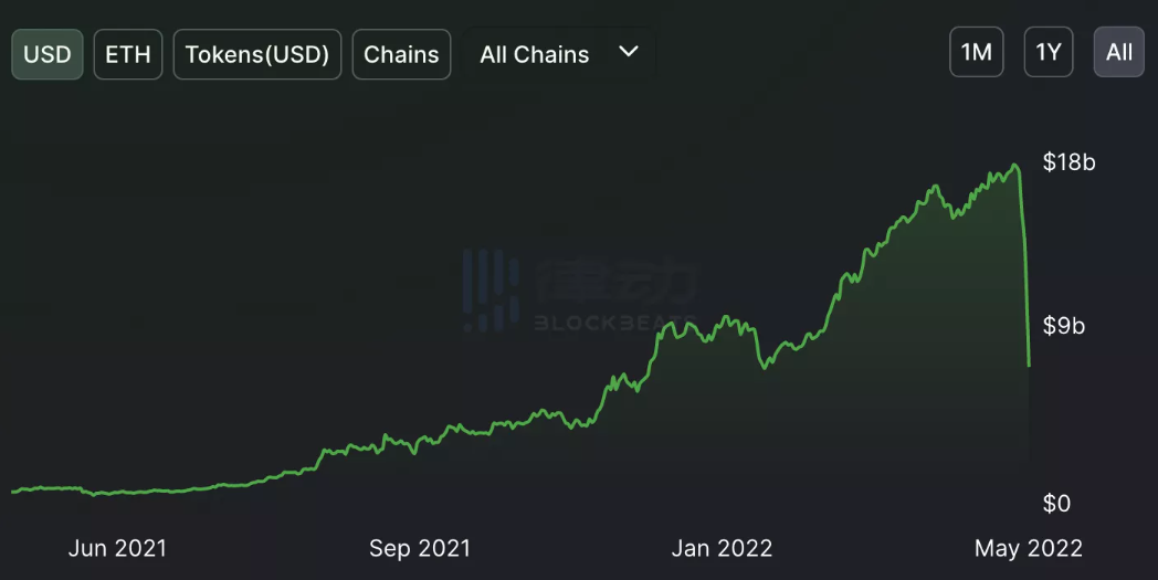 誰能想到,Luna 這個 TVL 近 200 億美元的第二大公鏈生態,在短短 2 天時間同時重演了泰銖和雷曼的恐怖災難。
