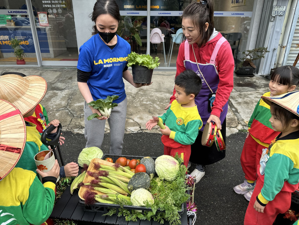 家扶說明,原本學校就有推動食農教育體驗,蔬果都由小朋友輪流澆水照顧,之前採收成果都是讓小朋友帶回家與家人共享,許園長得知家扶每年都會舉辧無窮世代義賣活動時,全校師生都極力支持愛心義賣活動,並討論將園內蔬菜拿來義賣,從栽種、採收、包裝上架和義賣,都是小朋友自己來,成就感滿滿,另有師生齊力製作天然茶樹清潔液、娃娃和玩具,期透過小朋友愛心傳遞邀請民眾做公益為開春討好采頭!