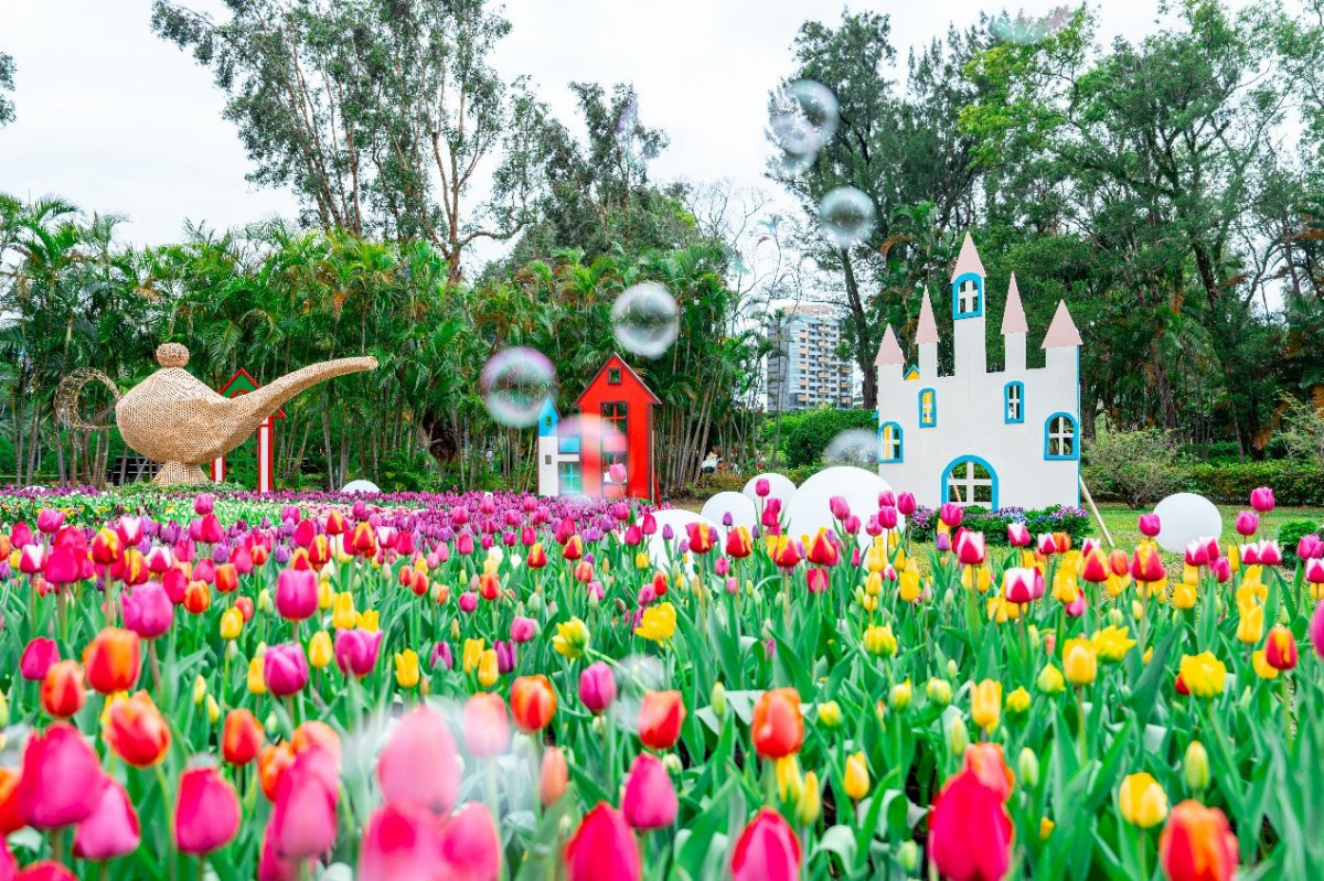 春日正好,暖暖的陽光下,五彩繽紛的士林官邸鬱金香展也被春意渲染出絕美色彩,以最美的姿態迎接每一位前來「愛的遇藝」的訪客,不來賞花豈不是辜負了這麼好的天氣!士林官邸鬱金香展以鬱金香象徵的愛與希望為核心,結合世界各國的情人節文化,打造八大展區,特別引進多種荷蘭及日本經典鬱金香品種,讓市民朋友不用遠渡重洋也能看見大片浪漫的鬱金香花海。此外,今年花展更與士林夜市商圈聯合會及士林夜市國際觀光發展協會攜手合作,不僅在展區內設置美食與文創市集,更聯合周邊商家推出限定優惠,讓賞花不僅是視覺饗宴,更是一場集結花卉、藝術、美食與文化的感官之旅!
