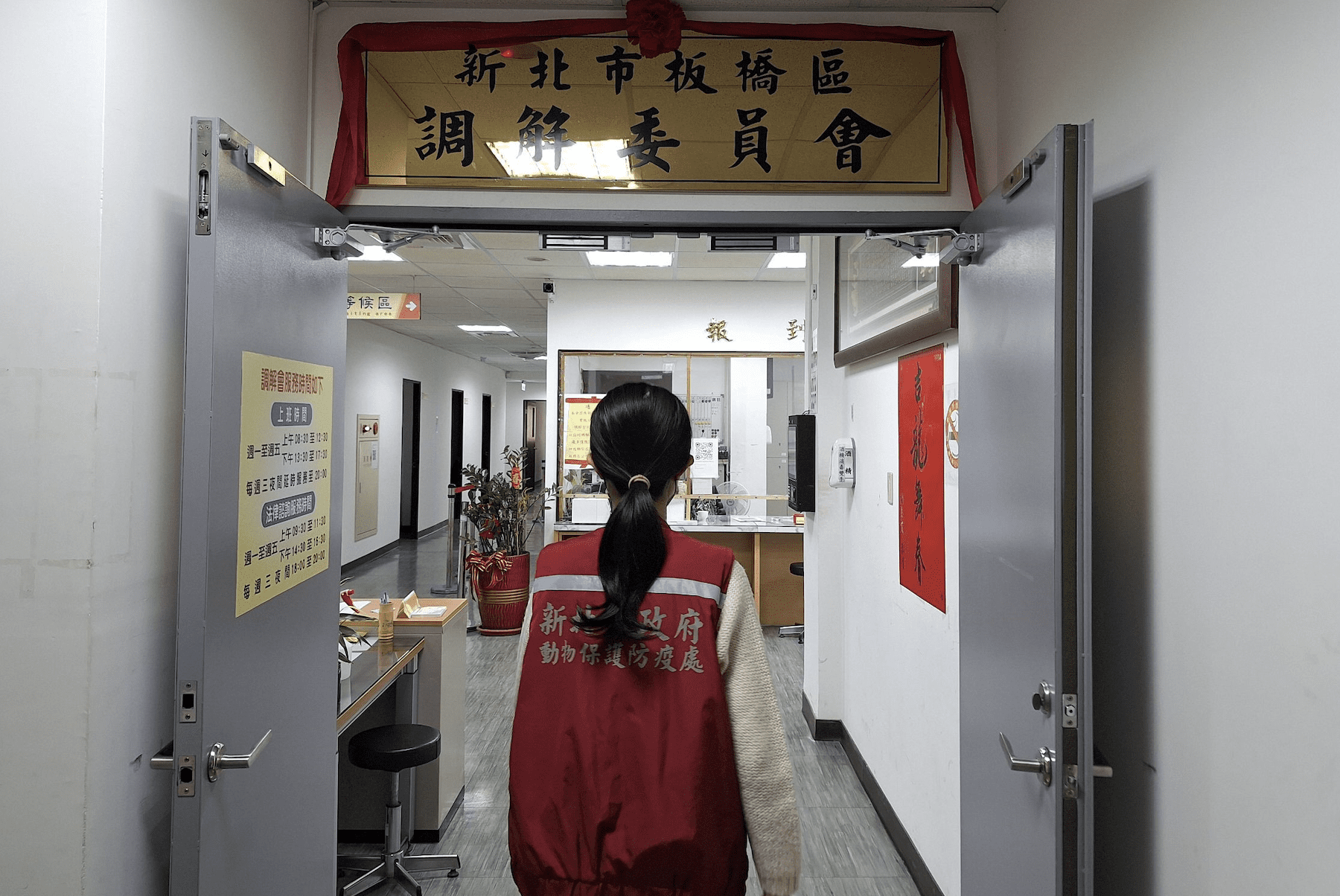 ▲調解委員為民眾解釋調解文件。(圖/新北市動保處 提供)