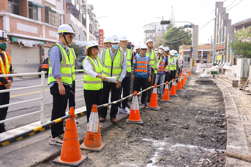 嘉義市長黃敏惠日前率市府團隊視察重大市政工程-「大雅路一段人行道改善」、「北園國小及北園國中通學步道」2項工程,聽取施工團隊工程進度說明及簡報,並邀集里長與會,聆聽居民反饋。黃敏惠市長感謝施工團隊的辛勞,解決大雅路一段長期困擾民眾之路樹竄根造成人行道破損不平影響通行安全問題,營造嘉義市東區門戶迎賓大道;建置串聯北園國中小兩校的步行環境,透過校園周邊植栽綠美化重塑景觀,以完善的人行空間「再造」景觀及人本環境,保護民眾及學生上下學安全。
