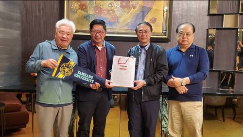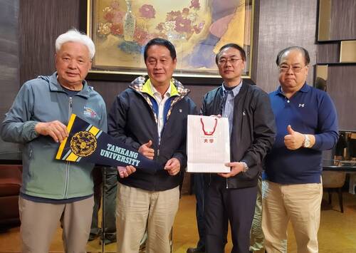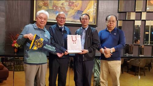 而在昨天(2/22)晚上,一行人還拜會高雄地區的高中學校校長,如雄中校長莊福泰、左營高中校長林百鴻、仁武高中校長余忠潔、鼓山高中校長廖俞雲、行政院南部辦公室處長劉昶成、高雄市家長協會理事長黎明,以及本身也是校友的八卦國小校長吳軒銘,及與淡江大學已經簽約結成聯盟的道明中學,由學校主秘李忠義及主任周坤德代表校長出席,加上居中媒合的道明高中前家長會長、淡江校友吳啟彰等人,洽談進一步合作的事宜。