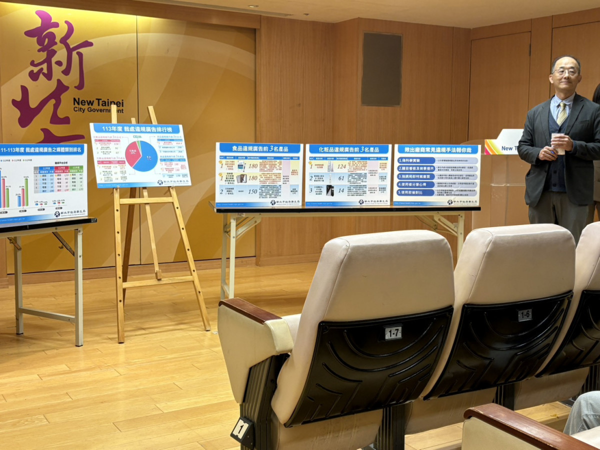 衛生局副局長馬景野表示,113年裁罰轄內食品、化粧品、藥品及醫療器材違規廣告共計1,061件,其中以食品類751件占71 %最高,其次為化粧品類246件占23 %,藥品/醫療器材類64件占6 %,違規廣告刊登媒體,又以網路814件(77 %)為最多,其次分別為電視頻道211件(20 %)、平面媒體26件(2 %)、及電台10件(1 %),顯示隨著電子商務的興起,消費者逐漸從實體店面轉向線上購物,間接促使網路和電視中的違規廣告比例上升。