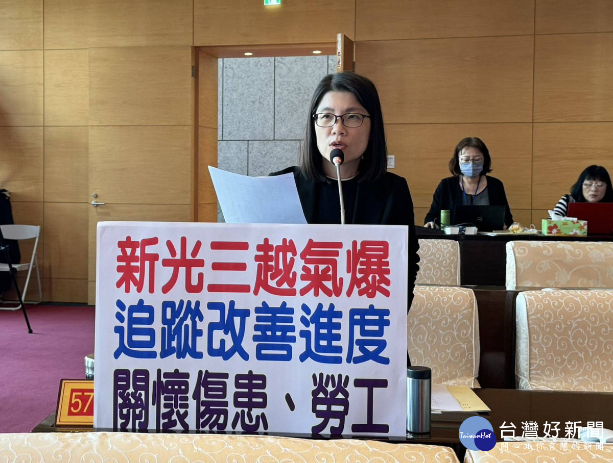 張廖乃綸還持續關切新光三越百貨中港店氣爆案的後續處理,要求市府要持續關懷受傷的傷患及受影響的勞工,此外,針對百貨大樓氣爆後建築物外牆附掛物的安全防護,業者申請改善時限展延到3月底,但張廖乃綸要求市政府一定要督促業者加速進行且謹慎處理,以免後續遇到強風大雨或地震,發生墜落事件危及公安。