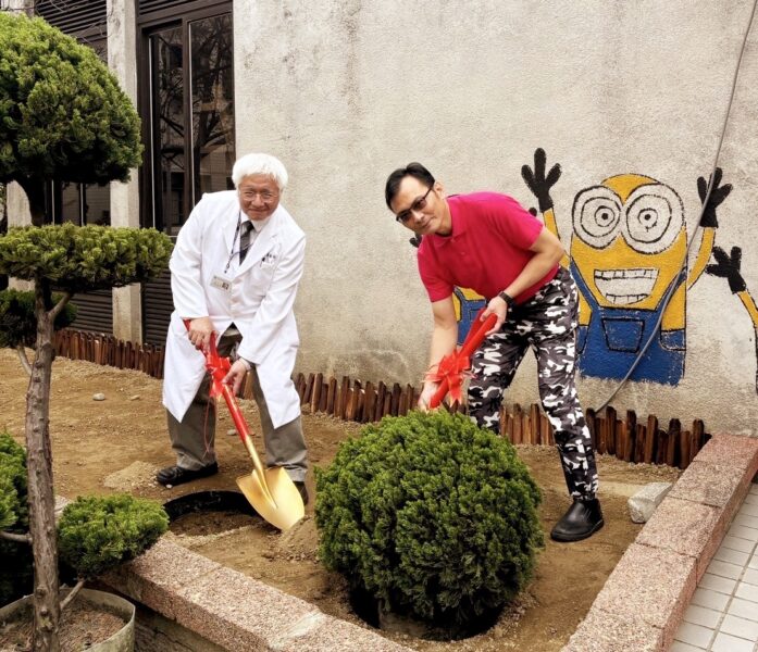 ▲臺北榮民總醫院新竹分院3/12日植樹節發起「共植希望樹.同撫心理花」活動,臺北榮民總醫院新竹分院院長陳曾基(左)親手植樹。(圖/臺北榮民總醫院新竹分院提供)