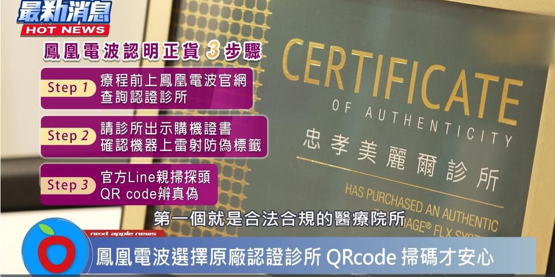 台灣微整形美容醫學會理事長陳美齡醫師,更進一步提醒,鳳凰電波可透過原廠認證機制,在療程前以官方LINE掃碼辨識真偽,但不肖廠商防偽技術日益更新,如果沒有官方LINE或辨識出來不是第一次的療程甚至非原廠正貨,就要小心。