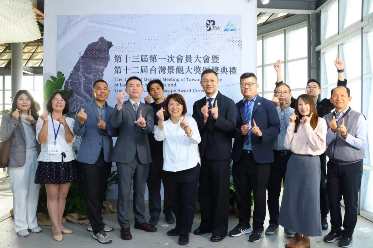 圖說:由中華民國景觀學會舉辦的第十二屆台灣景觀大獎,今(22)日在台北頒獎,嘉義市長黃敏惠率市府團隊北上領取包括2件最高榮譽「傑出獎」在內的6項大獎,成為最大贏家!得獎類別涵蓋環境規劃、公園綠地、社區營造及溝通傳播等,展現嘉義市推動宜居及永續城市的豐碩成果。(照片:嘉義市政府提供)