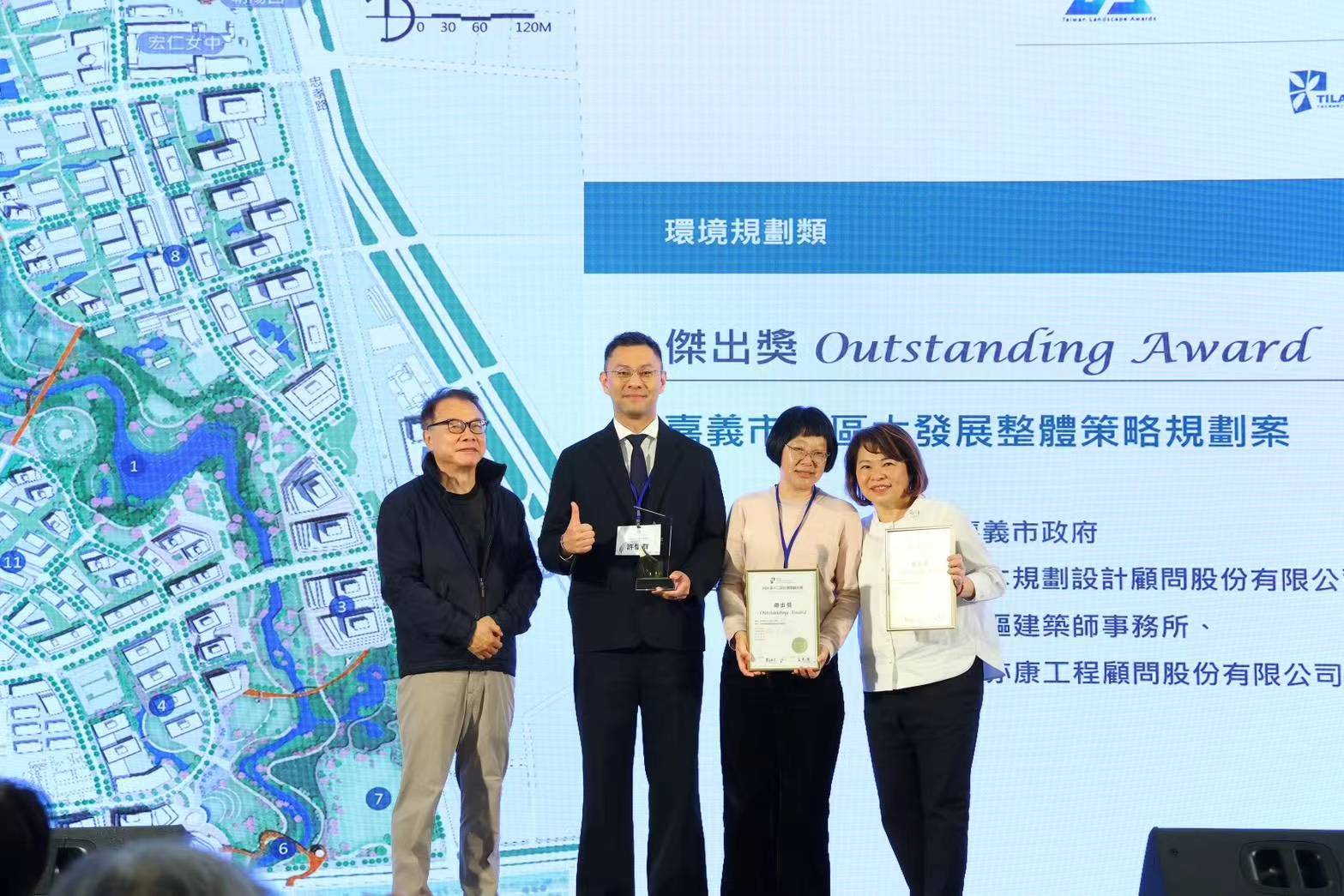 今年台灣景觀大獎最高榮譽「傑出獎」僅有3件獲獎,嘉義市政府就囊括其中2件,分別是「西區大發展整體策略規劃案」榮獲環境規劃類「傑出獎」;「嘉有木屋」榮獲規劃類「傑出獎」,顯示市府在都市發展的前瞻性與執行力備受專業肯定。