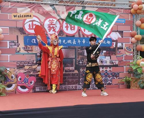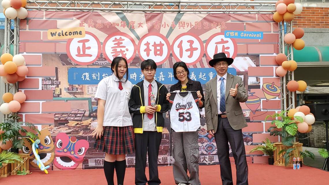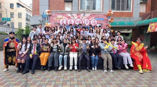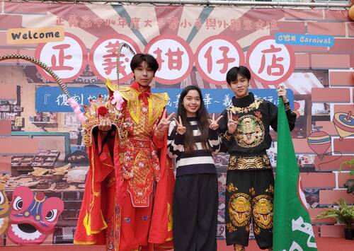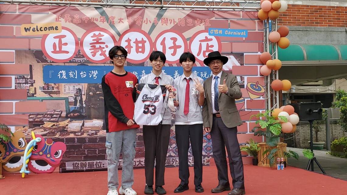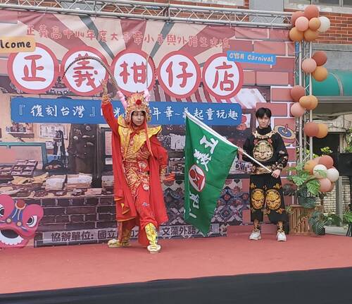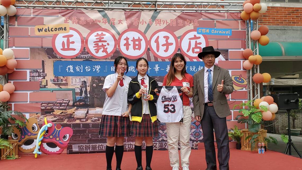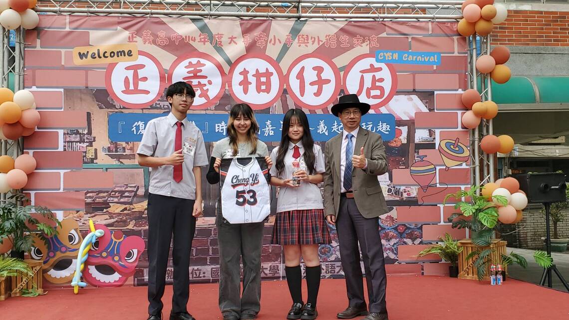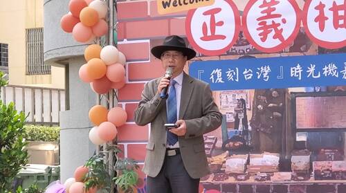 【漾新聞記者陳雯萍/高雄報導】高雄市正義中學3月20日舉辦「大手牽小手」與外籍生交流活動,以「『復刻台灣』時光機嘉年華~義起童玩趣」為主題,將舞台現場設計成台灣古早味的柑仔店。校長俞德淦上台致詞,口中說著流利的英文,但全身打扮卻是充滿著上海風,復古的氛圍,頓時充滿了笑點,也讓台下的外國大學生都驚呼連連!