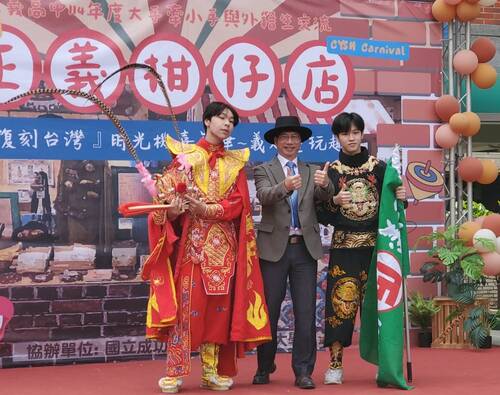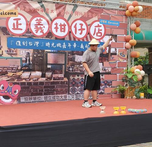 「『復刻台灣』時光機嘉年華~義起童玩趣」琳琅滿目的活動,除了舞台上童玩與難得一見川劇變臉的精彩演出,學校也規劃了十幾個童玩與台灣夜市攤位,讓各國大學生盡情體驗台灣學生、老師的小時候「玩具」,感受台灣文化的異國風情。