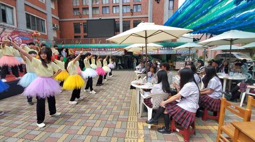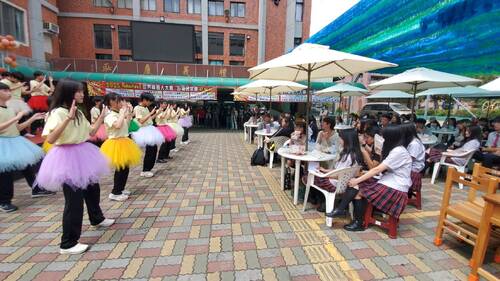 琳琅滿目的活動,首先上場的是由高一四班學生進行的歡迎秀,全班學生們為了這場表演,準備多時,不管男女生都穿起了蓬蓬裙,熱情的舞蹈,賣力的演出,為活動掀起第一波的高潮。