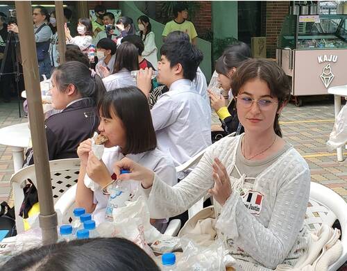 冰淇淋向來是學生的最愛,今天學校的攤位也邀請了業者前來擺攤,讓參與演出與服務的正義學生,以及各國大學生, 都能夠品嘗冰冰涼涼的冰淇淋 ,享受好時光。