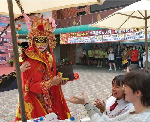 圖/高一2班學生李鎮宇及李震緯專業級的川劇變臉演出,神乎其技,讓外籍生大開眼界!(記者陳雯萍攝)