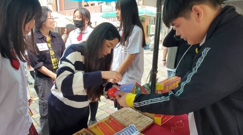 圖/正義中學「復刻台灣」時光機「正義柑仔店」外籍生新鮮體驗義起童玩趣!(記者陳雯萍攝)