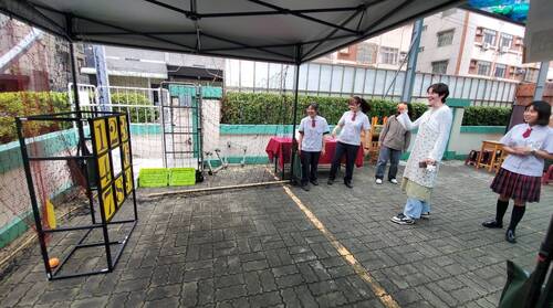 今天,文藻與成大的外籍生多達16人,他們分別來自美國、加拿大、澳洲、泰國、法國、土耳其、越南、緬甸、愛爾蘭、中國等10個國家,在兩大學老師的帶領下,總計18人與正義中學的國高中部學生,進行了一場充滿台灣古早味的童趣體驗。