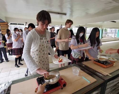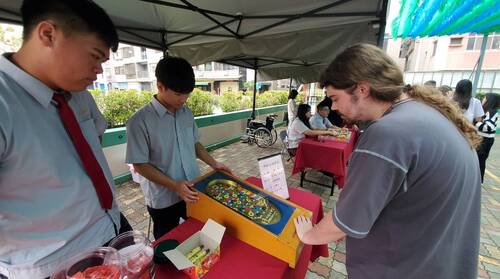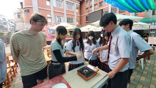 今天他也特別感謝他的親善大使高一1班的繆品諄,教了他很多國語,也認識很多台灣文化,「他是個好人!」。繆品諄也回答說,很開心今天能有這樣與外籍生的共同體驗,也是很棒的體驗。