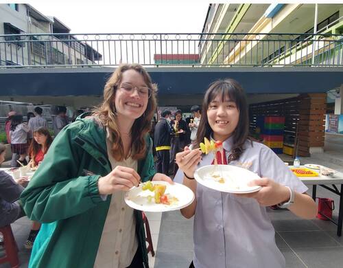 親自參與並見證活動舉辦三年,教務主任余慕貞談到對學生們的意外收獲,讓她相當驚喜!她說,其中一位文藻外語大學華語中心的外籍生愛爾蘭籍的愛瑪,今年已經參加第三年第三次。第一次她來的時候,陪伴她的學生親善大使倆個人就建立了好交情,平常就會用英語、華語及日文在網路上溝通,善用自己所學來的語文,今年親善大使已經升上高二,透過這樣的交流,意外的讓學生學到更多,也建立與外籍生長久的友誼,也突顯了這個活動的真正效益。