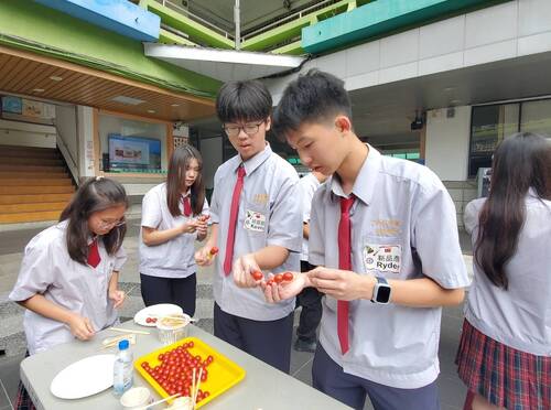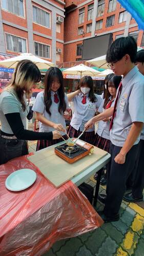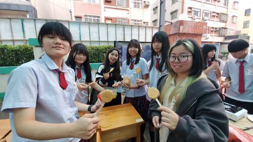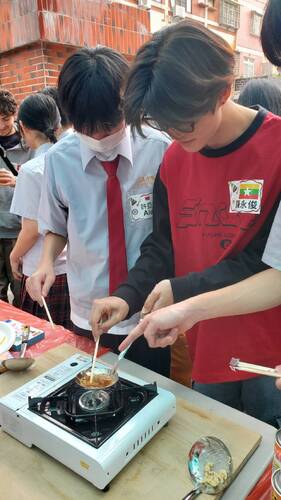 隨後則是正義柑仔店所進行的文化體驗,邀請專業老師們前來指導外籍生與學生們 DIY碰餅、麥芽糖餅、糖葫蘆,以及麵茶等充滿童年記憶的甜點零嘴,再度讓外籍生大開眼界!