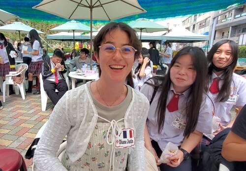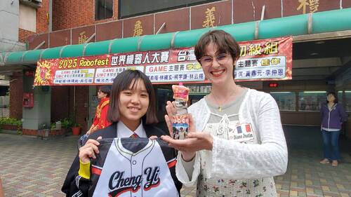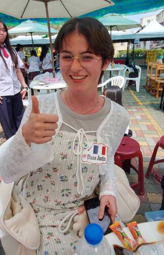 談到專程前來正義中學進行復刻台灣童玩美食的體驗,來自法國,成大華語文中心外籍生一路體驗到底,也一路笑到底!她開心的說,正義同學們的表現真的太棒了,尤其是表演川劇變臉的學生真的太棒了!她說,過去有看過專業的變臉表演,但這次是年輕學生,真的好厲害!