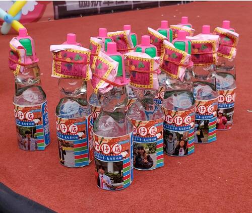三年來積極用心規劃籌辦這樣精彩的活動,學務處訓育組長黃淑絹也談到舉辦活動的精神,在符合教育部大手牽小手的計畫。不僅活動辦得精彩,連送給外籍生的禮物也是別出心裁。黃淑絹也談到籌畫準備的用心,她說:為了讓外籍感受到台灣五、六年級生滿滿的童年回憶,今天規劃的「復刻台灣」時光機的活動,除了上午安排參訪台灣滷味博物館與皮影戲博物館,來到學校,也體驗台灣童玩的表演與古早味的美食甜點,尤其特別製作了「鹹酸甜」就是讓他們能體會漸入佳境的感受。同時還有台灣小時候的彈珠汽水。而去年學校校慶特別製作的運動服,也設計成紀念提袋,送給每位外籍生,相當有意義!