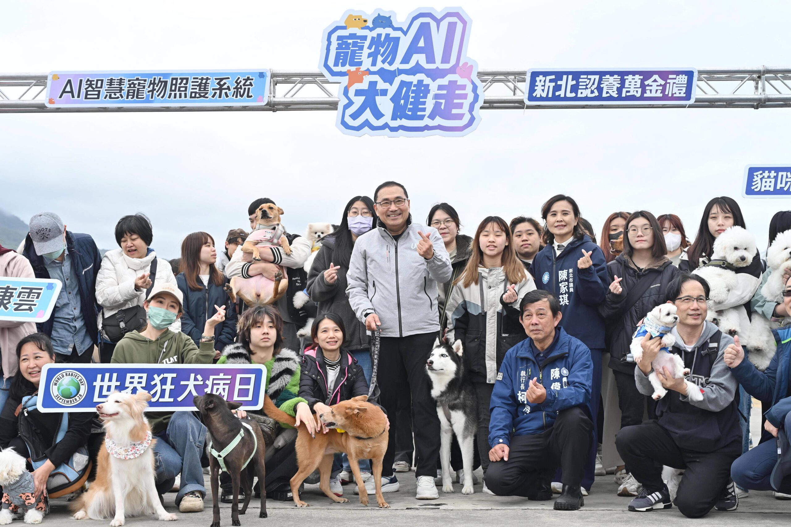 記者孫筱華/新北報導 新北市政府今(29)日在淡水金色水岸舉辦「寵物AI大健走-新北認養萬金禮」,市長侯友宜與金曲歌后潘越雲共同出席活動,宣傳新北市首創「智慧寵物照護存摺」,並鼓勵民眾響應新北動物之家毛寶貝認養活動,可獲得「認養萬金禮」。