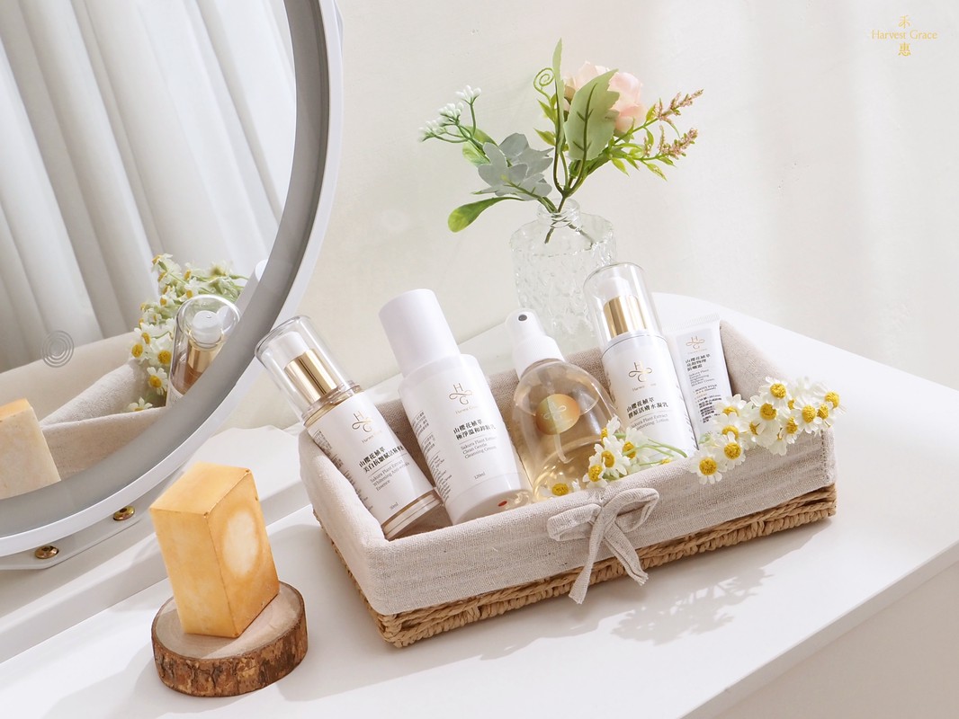 由國立大學教授攜手專業研發團隊成立的臺灣在地保養品牌-禾惠HG,今年以植萃護膚最新趨勢成分-來自北投的「臺灣山櫻花萃取」,發表花嶼系列保養品,以臺灣山櫻花萃取具天然的抗氧化能力與強化肌膚修復力,該系列更是訴求溫和安全,膚質敏感也能安心使用。