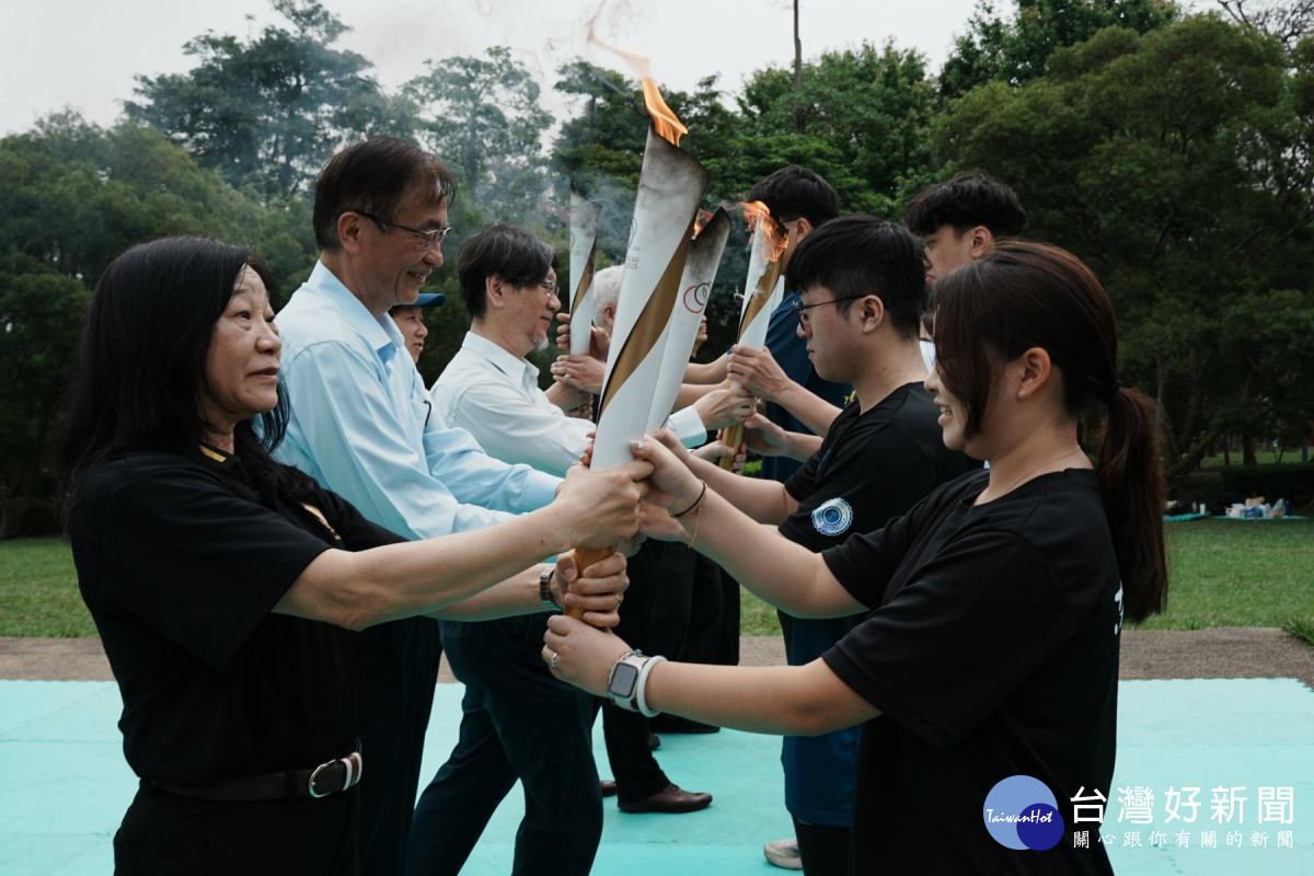 李泳龍校長說,為展現不一樣的思維,此次聖火引燃設計以榮耀之火為主軸,融合象徵純潔與永續的色彩與造型。聖火台採圓形火焰碗與四足結構,寓意穩固與團結,銀白主色搭配紅橙黃火焰,展現熱情與希望。9日至11日的聖火傳遞行程,將走訪東海大學、台灣體育大學、清華大學、台北市立大學、中央大學、中原大學、成功大學、高雄大學、海軍軍官學校及屏東大學等10所大學。