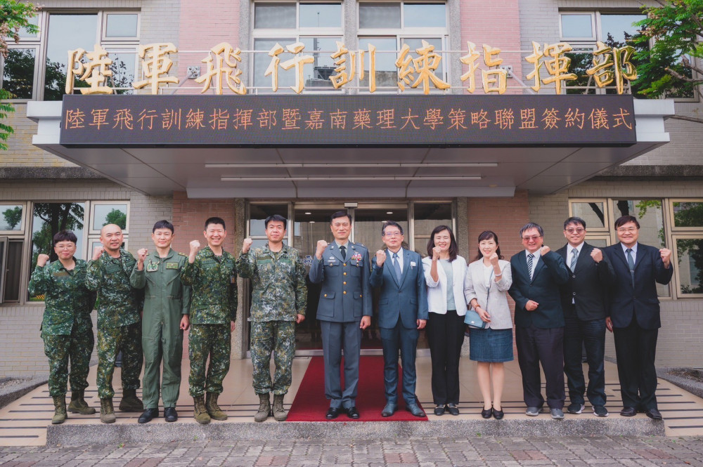 【大成報記者杜忠聰/臺南報導】嘉南藥理大學與陸軍航空特戰指揮部飛行訓練指揮部於10日下午正式締結策略聯盟,雙方在飛行訓練指揮部接待室舉行合作意向書簽署儀式,由嘉南藥理大學校長張翊峰博士與飛行訓練指揮部指揮官張侯天汶少將代表簽署,宣示雙方未來將在多項領域展開緊密合作。