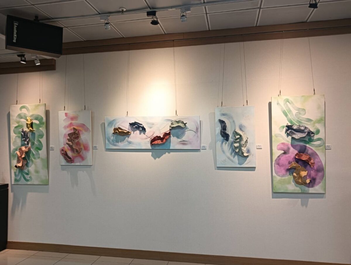 ▲陳信正此次的個展共有四大系列作品:第一系列為飄浮系列—圖版上的曲線以朦朧的感覺呈現。(圖/彰化市公所提供)