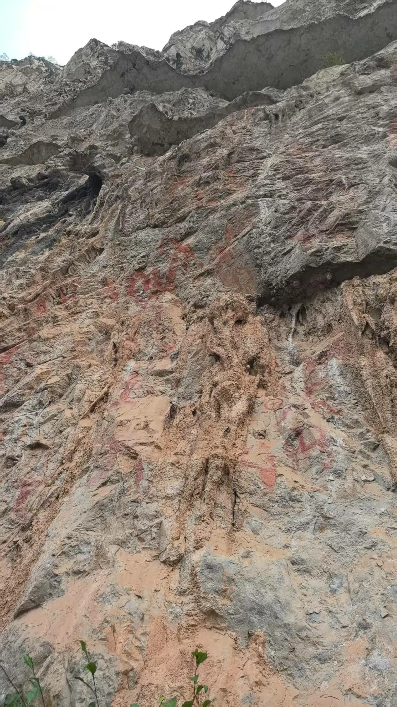 上了岸近距離看這些峭壁上的赭紅色圖像,雖然經歷了風雨,但還是很震撼,人物圖像大多是“蹲式人形”,他們跳舞的動作跟青蛙有點像,這其實是因為當時的駱越先民把青蛙當成圖騰,認為青蛙能呼風喚雨,對農事很有幫助。
