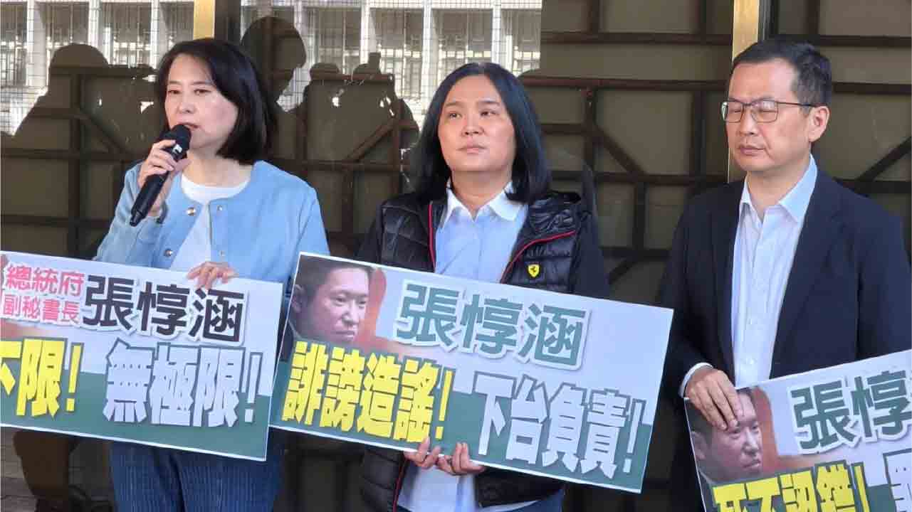國民黨團今(14)日由書記長王鴻薇、首席副書記長羅智強及副書記長陳玉珍前往台北地方法院,控告總統府副秘書長張惇涵涉嫌毀謗及違反選罷法,並要求其下台負責。