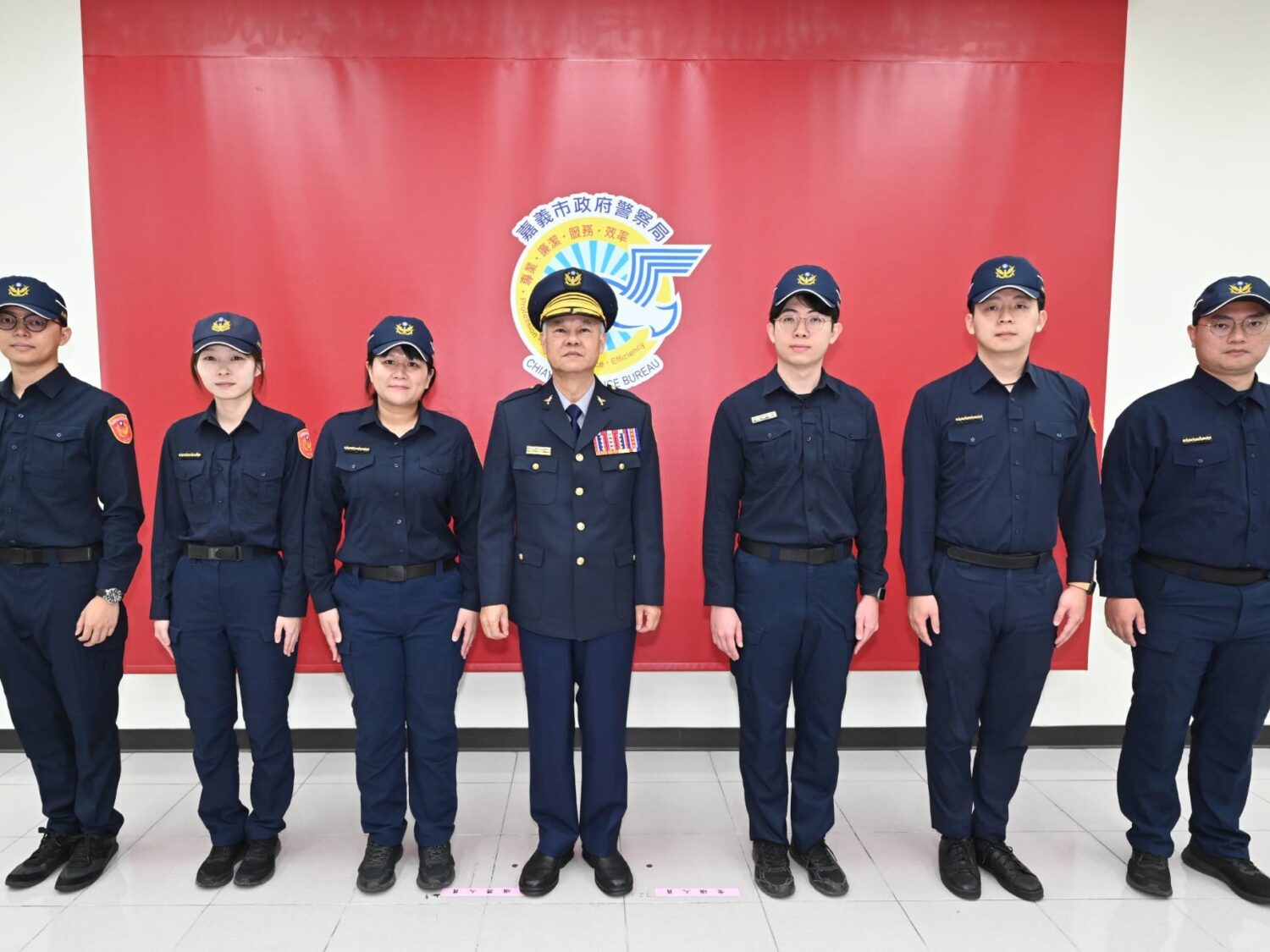 〔News586/記者呂昭德嘉義市報導〕嘉義市政府警察局於4/16日辦理警員陞任偵查佐職務的授階儀式,由局長沈炳信親自授階,並公開表揚錄取中央警察大學114年警佐班第45期人員;沈炳信局長表示,本次陞任新職的偵查佐蕭浤峻、鄭羽彤、林家羽、陳昱安、許再程及陳又睿等6位同仁在工作上兢兢業業、努力付出,才能獲得陞職的機會,除肯定同仁為嘉義市治安的貢獻,並相信新血的注入必能強化刑事工作的即戰力。