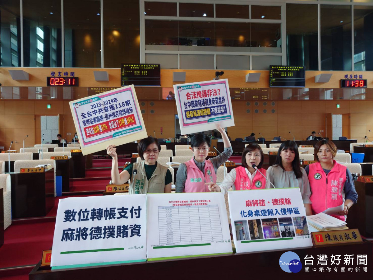 陳淑華認為,麻將館、德撲館掛上桌遊的名義,或以協會辦活動,競技、比賽、講座做包裝在大學周邊設立,誤導民眾、敗壞社會風氣、影響學生的學習。台中市查獲實際從事麻將、德州撲克在112年有53家,而在113年更成長到了65家,一年增加了12家,顯示目前經發局的審查機制根本形同虛設。